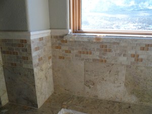 While solid surface granite on a counter top is relatively maintenance free, natural stone on a floor is a big maintenance commitment. Some of the softest stones, like travertine, should never be used on a floor unless you’re willing to put in a lot of time and expense for upkeep. Natural stone on a shower floor is a maintenance nightmare! Shower floor tile needs to be smaller, 4”x4”on average to allow the floor to slope the water to the drain. The smaller tiles will also be less slippery on a wet floor. Porcelain comes in sheets of smaller tile that can be used for this purpose or porcelain can be cut to size. The bigger sizes tend to run less per square foot, but by the time your tile contractor charges for the additional labor for cutting, you might break even on this deal.