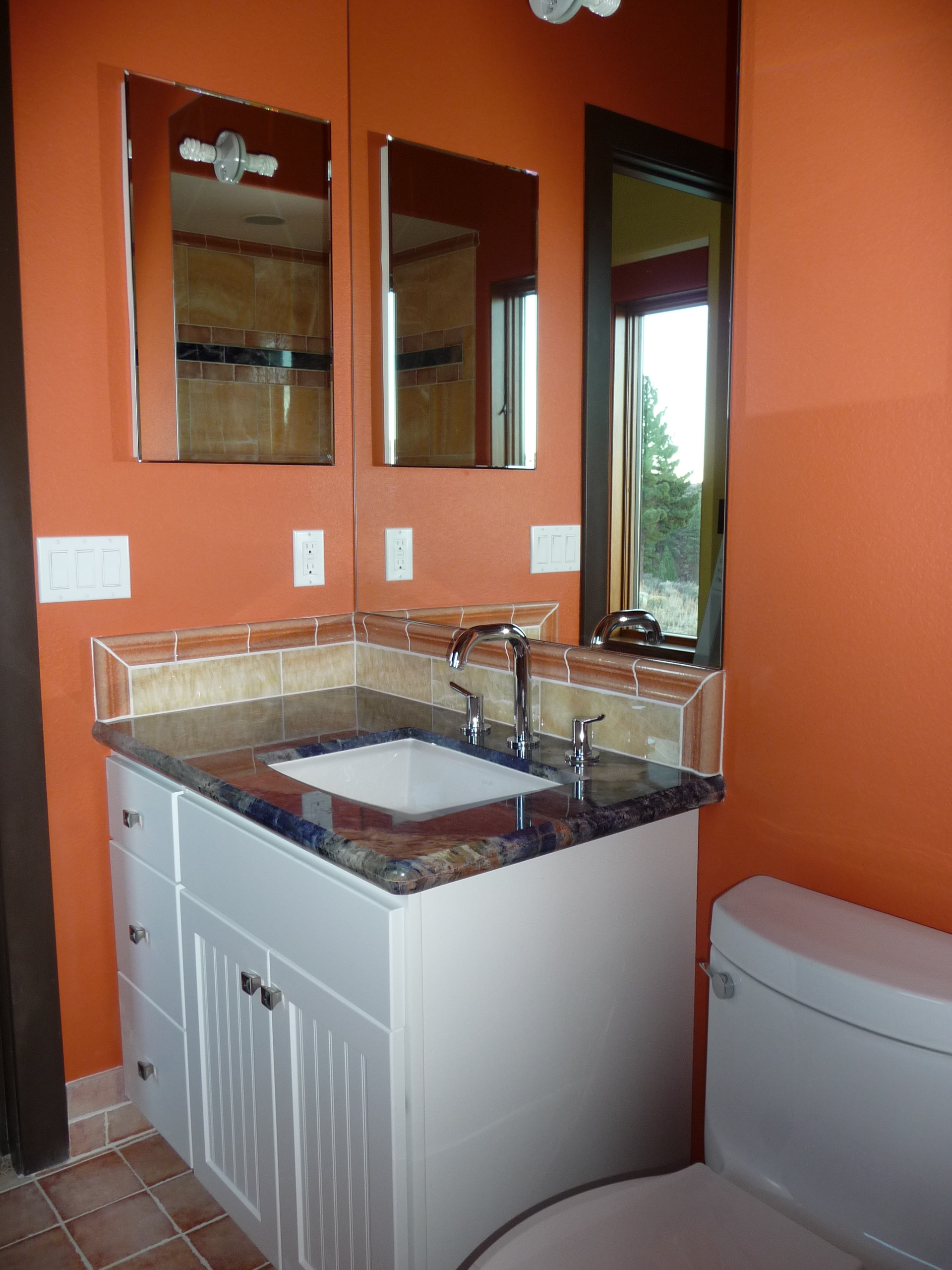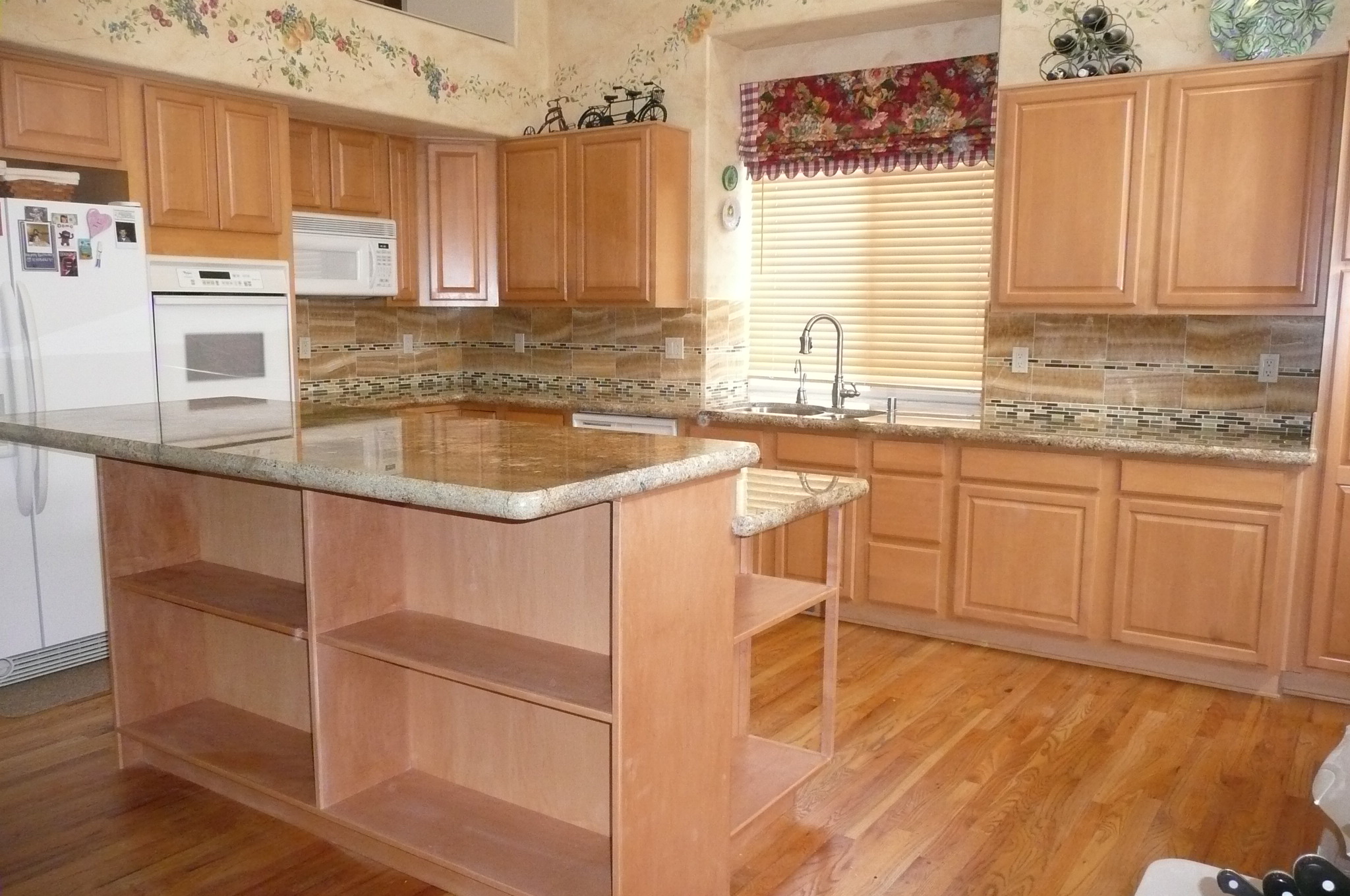 When looking at replacing an old tile or laminate counter, invariably, the question of whether or not to replace the cabinets comes into play. There are cabinet re-finishers in every town that can offer to refinish old worn face frames and cabinet doors. I’ve found that the cost of doing this is substantial. Doors with detail can be very expensive to refinish. Companies selling their services will make a persuasive argument about why their services are a “good deal” compared new cabinets. Sometimes this is true. Sometimes the face frames (front of the cabinet boxes) are worth saving and can be refinished. New doors and drawer faces can be purchased and then stained to match.